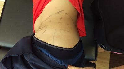 以人體彩繪筆畫出常見激痛點位置,讓學員快速了解並實際觸摸